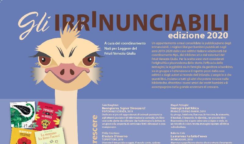 Un appuntamento ormai consolidato la pubblicazione degli Irrinunciabili, i migliori libri per bambini pubblicati dalle negli anni 2019- 2020 dalle case editrici italiane e selezionati dal coordinamento regionale NpL, dai bibliotecari e dai volontari del Friuli Venezia Giulia. Per la scelta sono stati considerati l'originalità e piacevolezza delle storie, l'efficacia delle immagini, la leggibilità sia in famiglia da genitore a bambino, sia in gruppo e l'attenzione e il rispetto posti dalle case editrici e dagli autori al mondo dell'infanzia. I libri della bibliografia sono disponibili nelle biblioteche del Sistema Bibliotecario Tagliamento Sile unitamente a quelli delle passate edizioni.